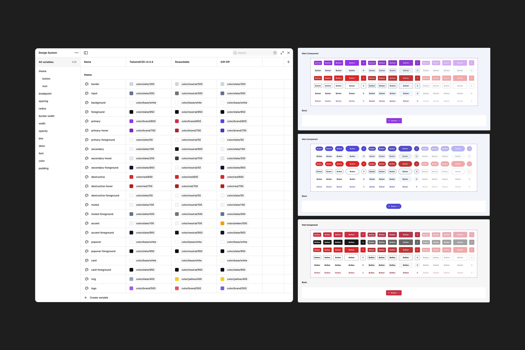 After the development team decided on using React and Tailwind CSS with shadcn/ui components, I began exploring ways to integrate this stack into Figma to support a unified design system.