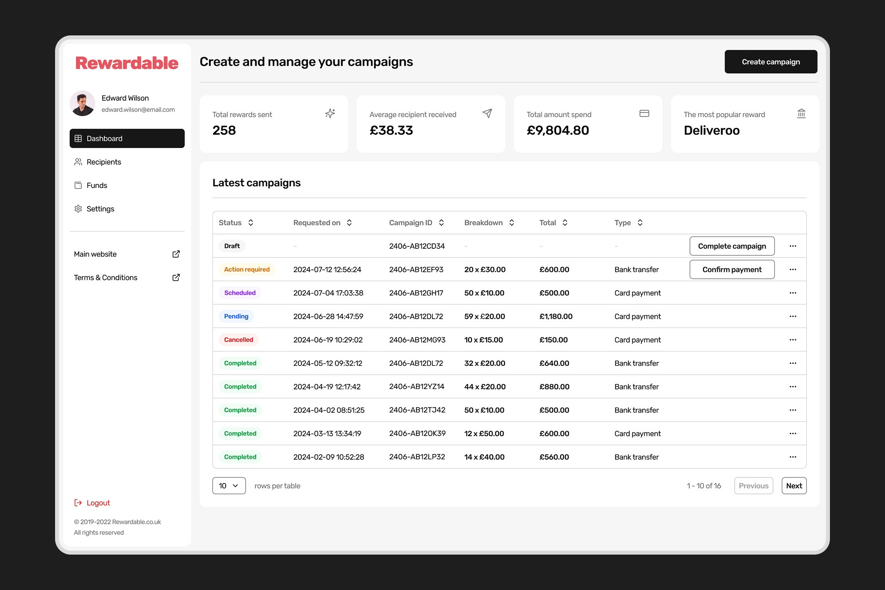 Rewardable had distributed over £10M worth of rewards within ten months of the project’s completion.
