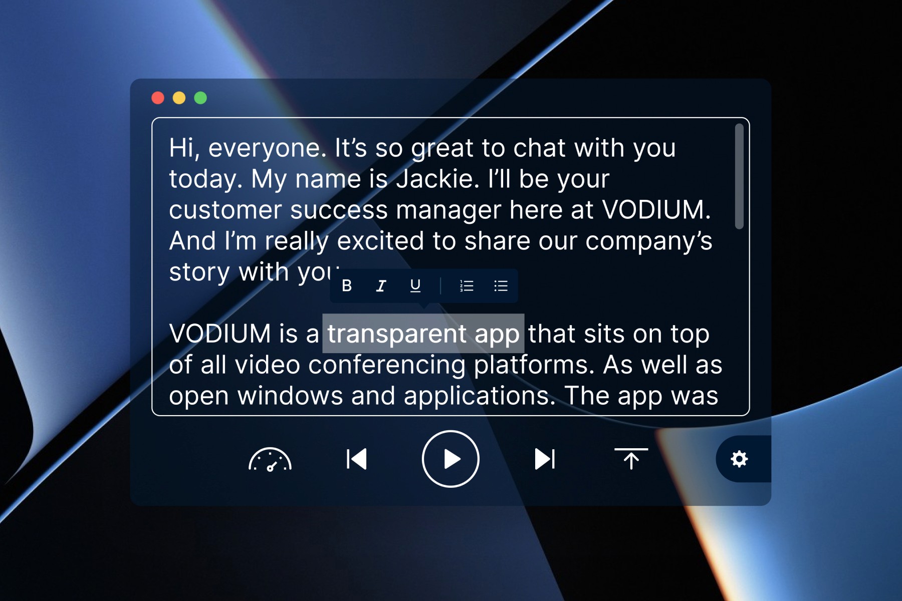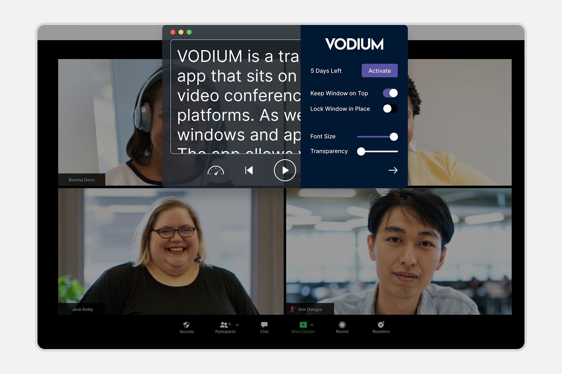 I worked with Vodium, a virtual teleprompter app for macOS and Windows, to rebuild and relaunch their early prototype into a more stable and scalable product. Backed by initial user feedback, the team aimed for a complete overhaul of the application, its infrastructure, back office, payment systems and licensing model.